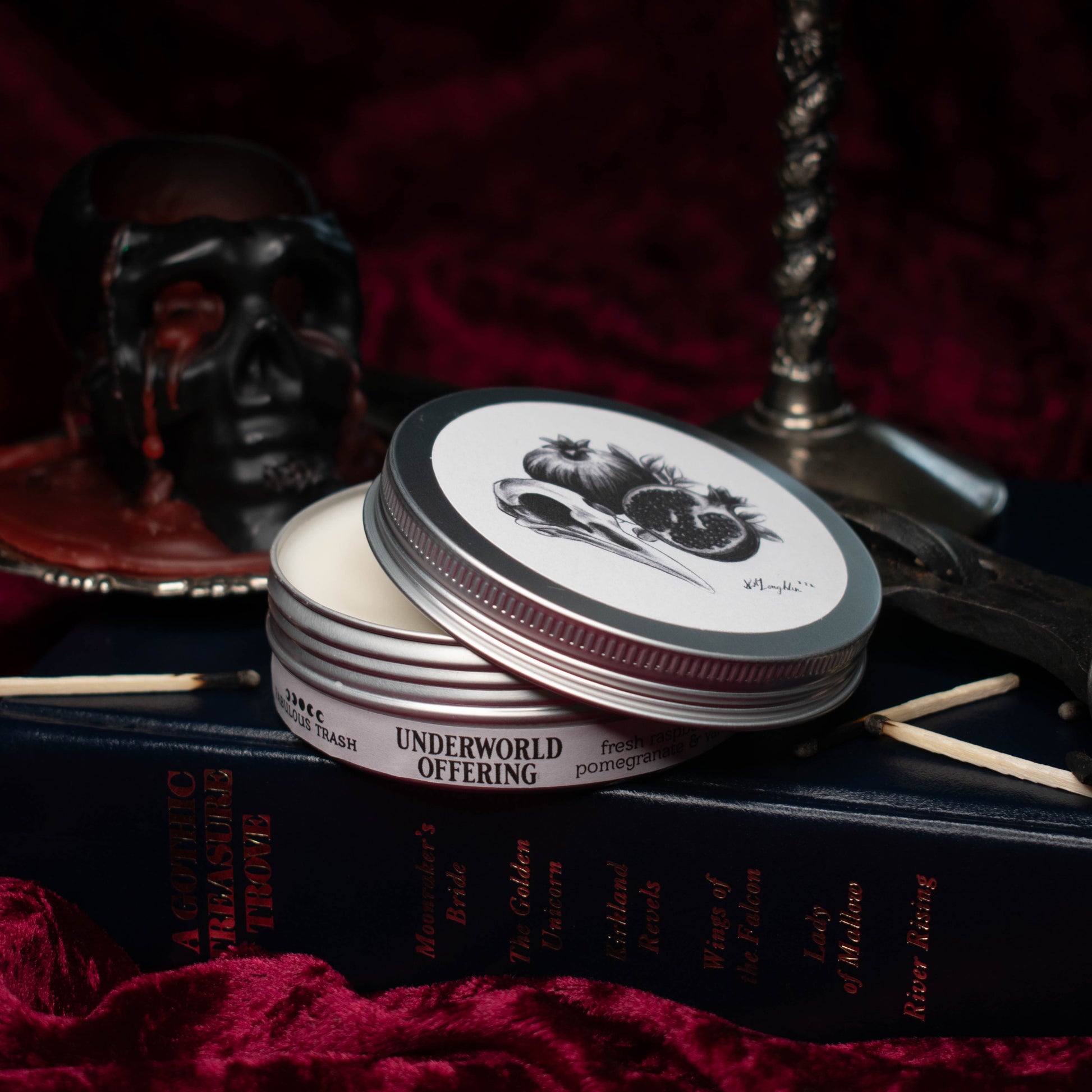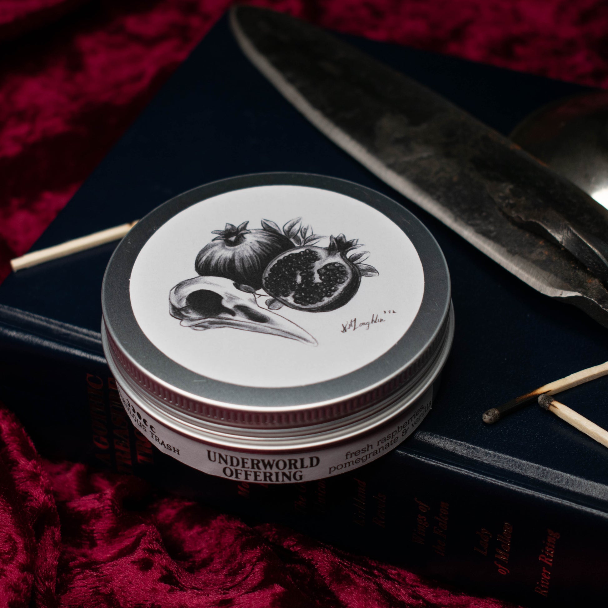 Scented with fresh raspberries, pomegranate & vanilla, this candle smells sweet and deeply decadent, like an offering of dark fruits given to the goddess Persephone